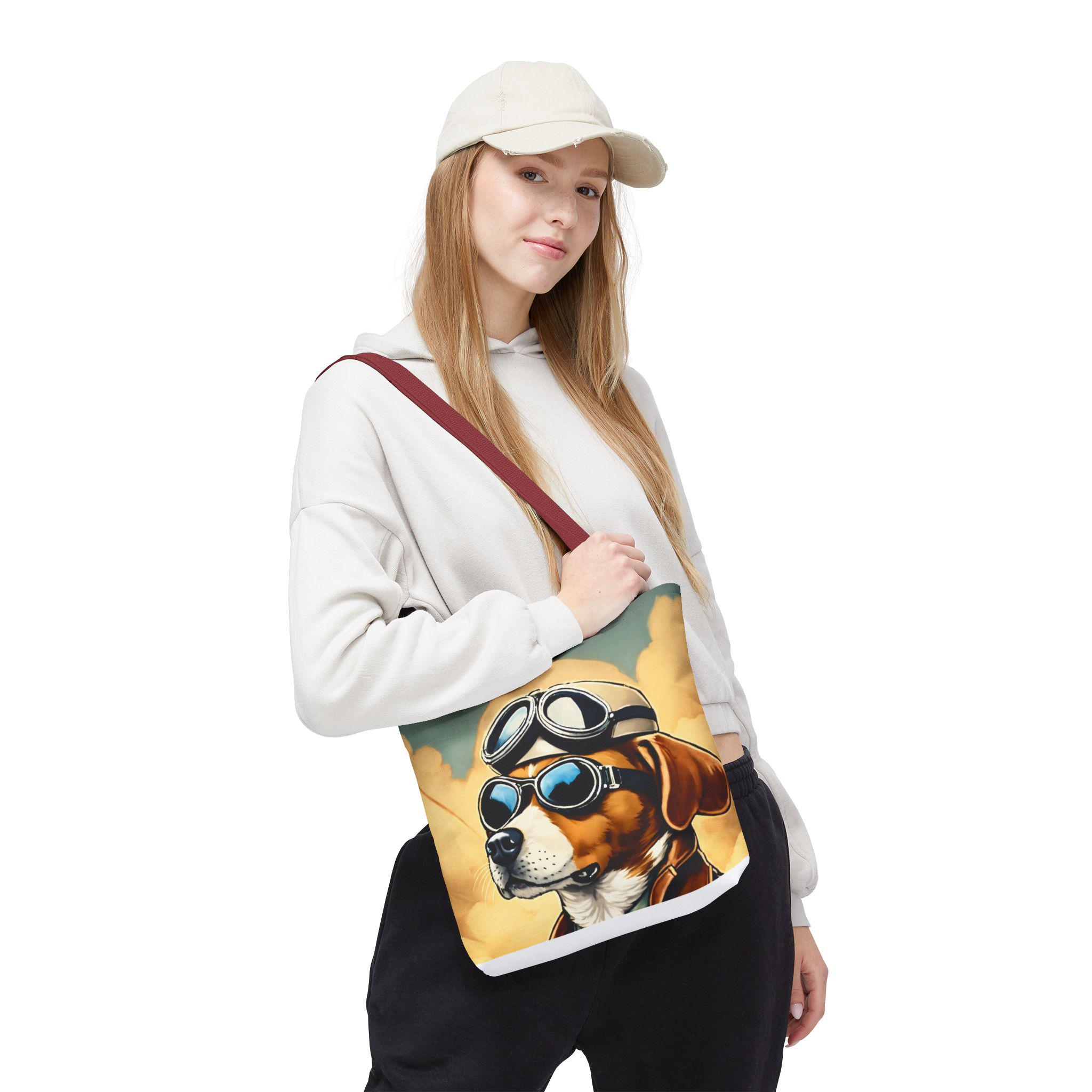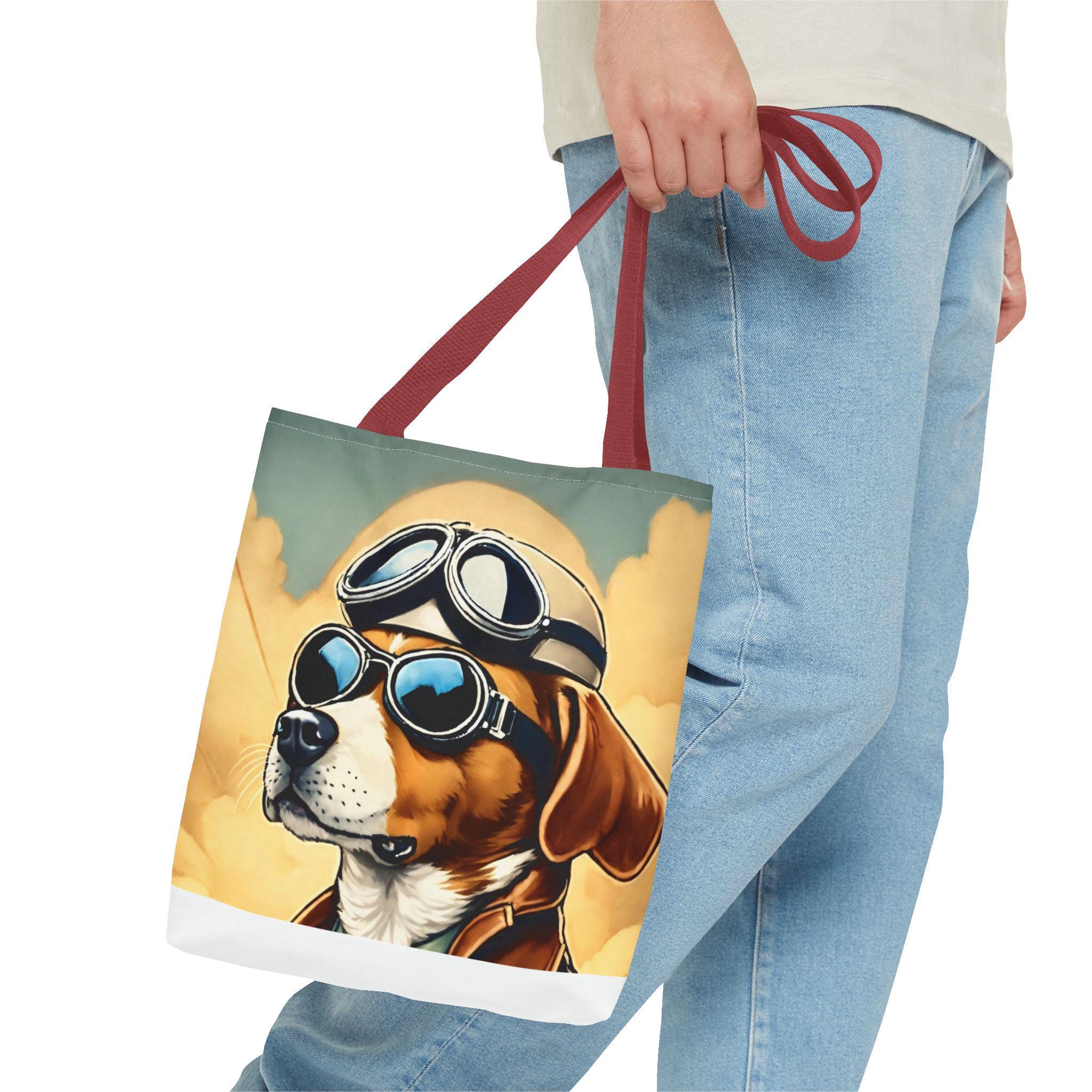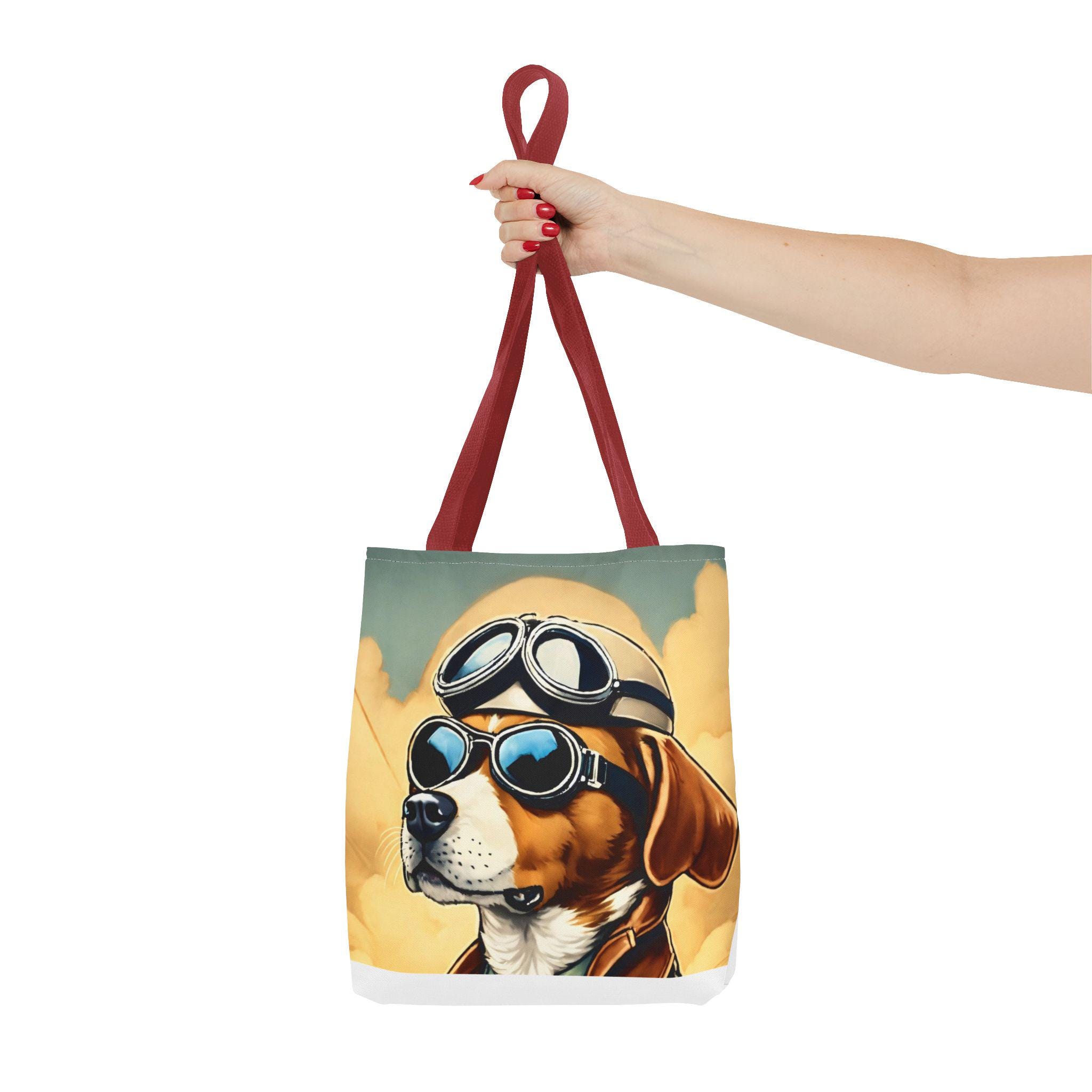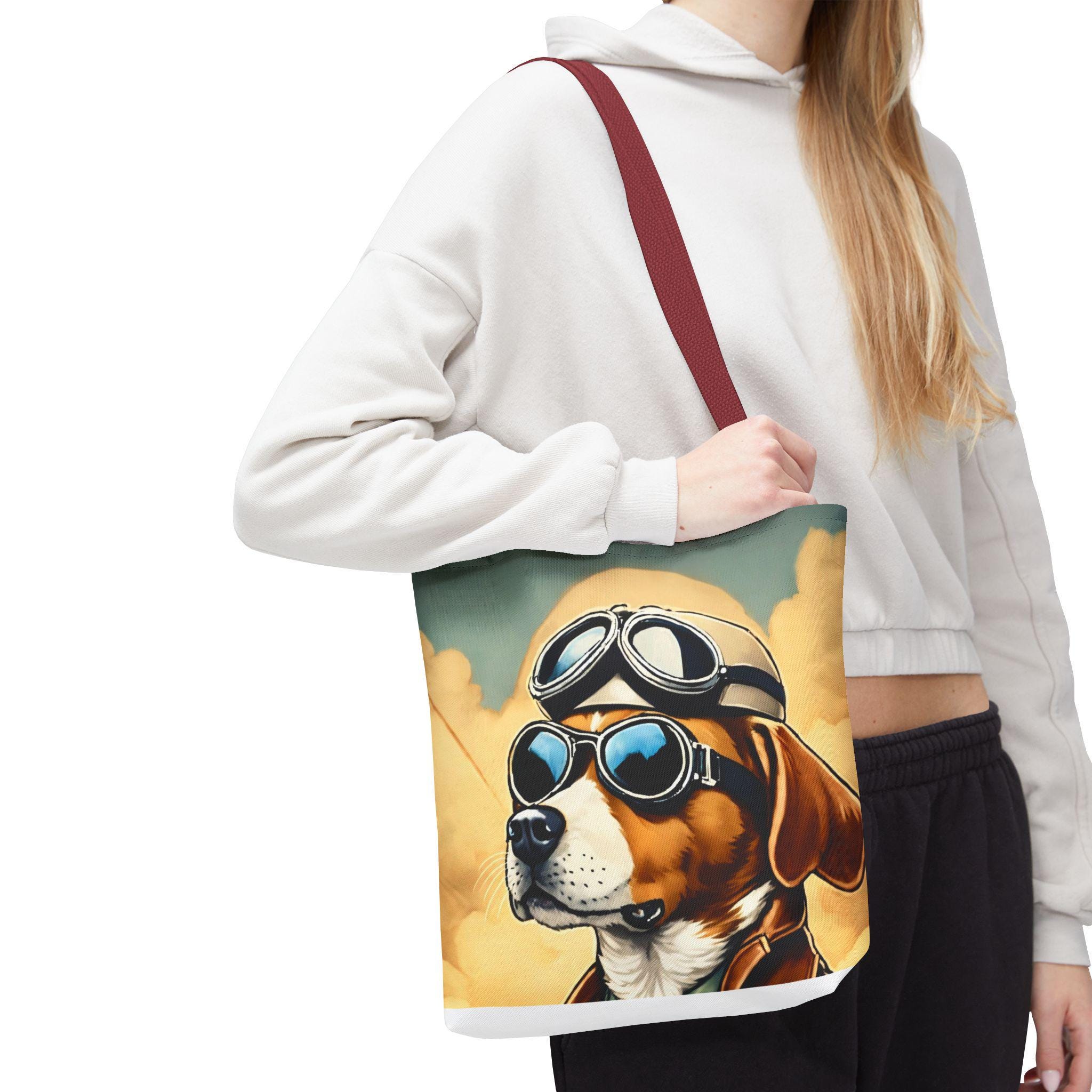This canvas-style tote carries a playful, nostalgic vibe — a vintage aviator dog rendered in warm, painterly tones. The image sits boldly across the bag, its goggles and leather cap evoking open roads and weekend adventures. Durable polyester construction and a roomy boxed shape mean this tote moves from farmers’ markets to commuter trains without losing its charm. Choose a handle color that matches your mood and pack it with groceries, sketchbooks, or a lightweight jacket for impromptu day trips.