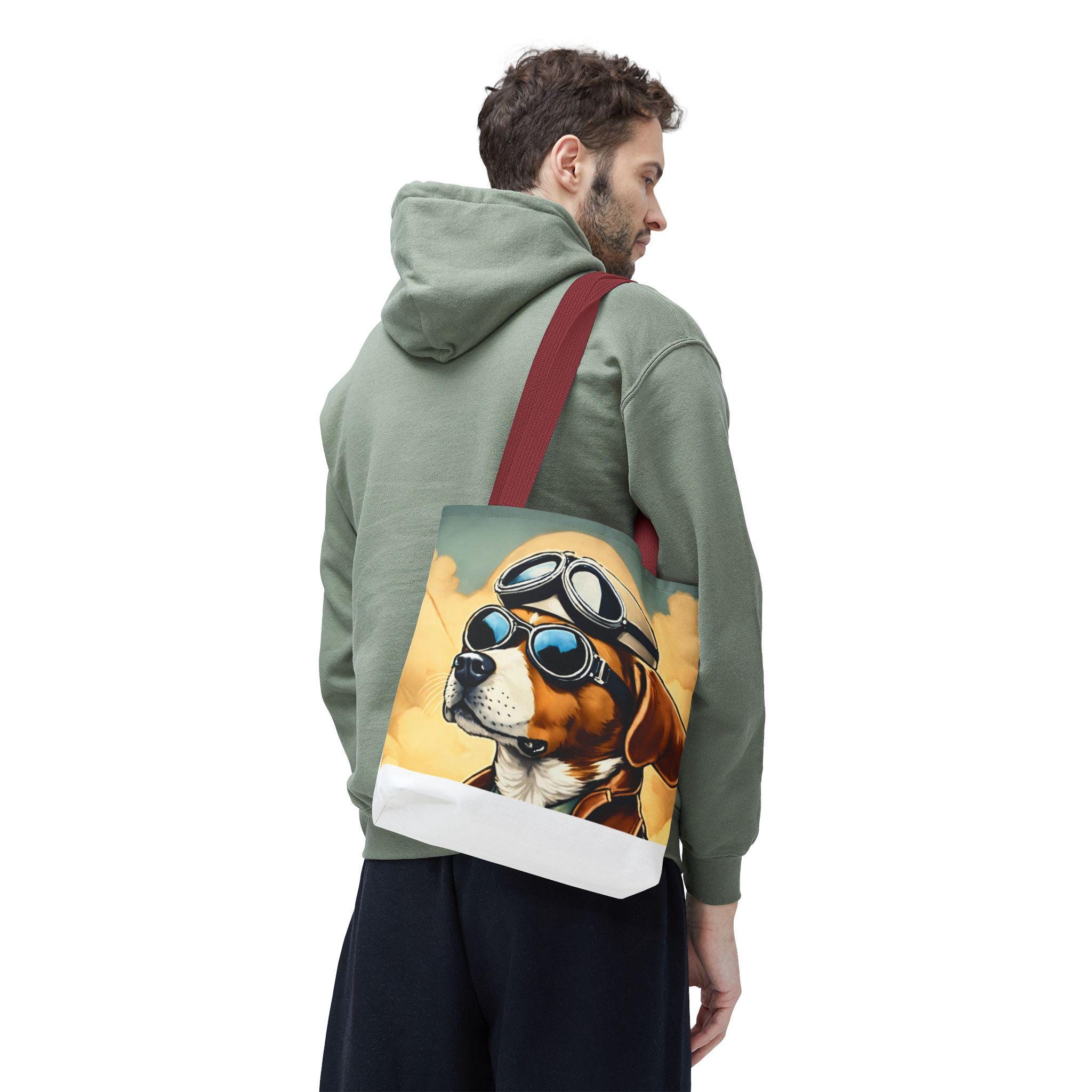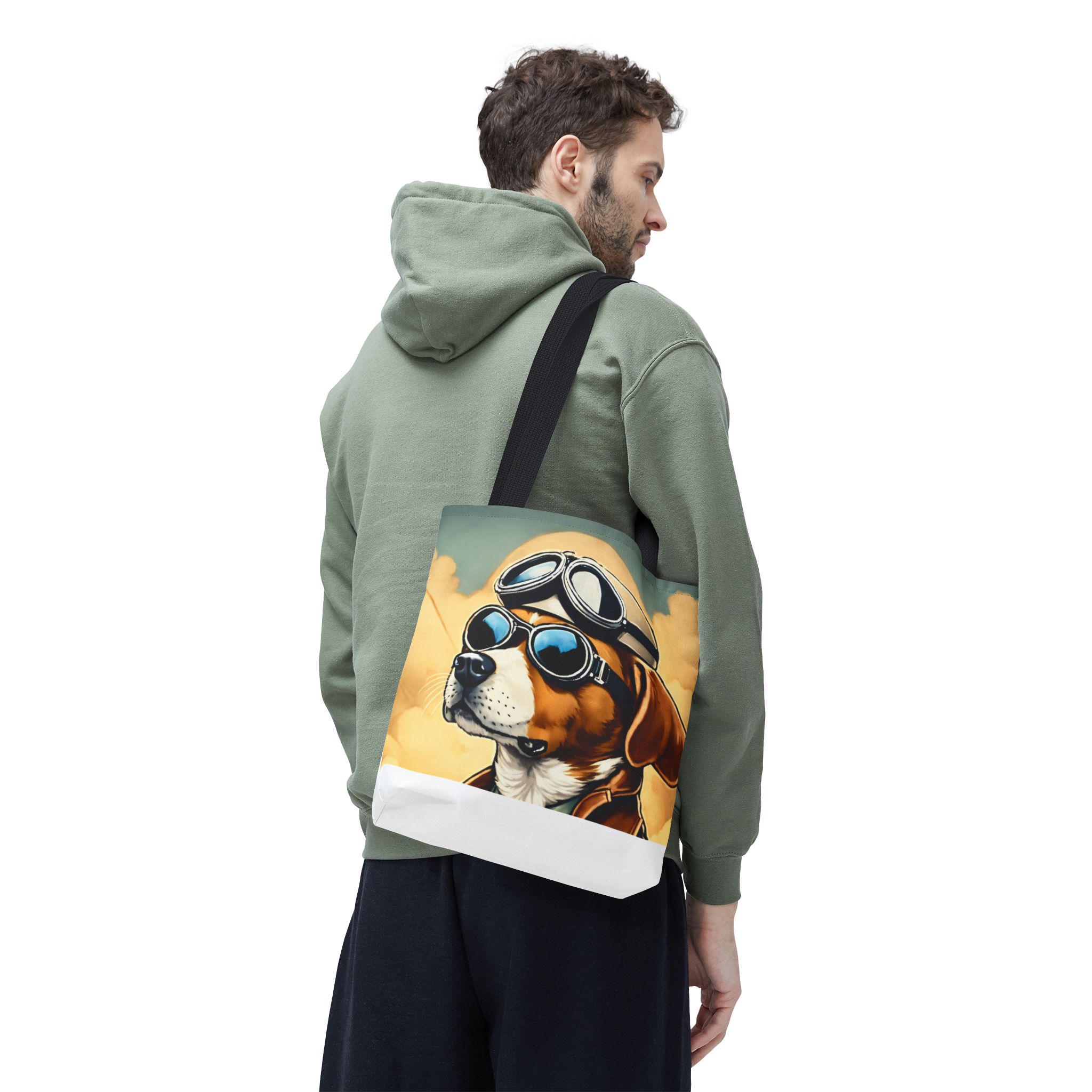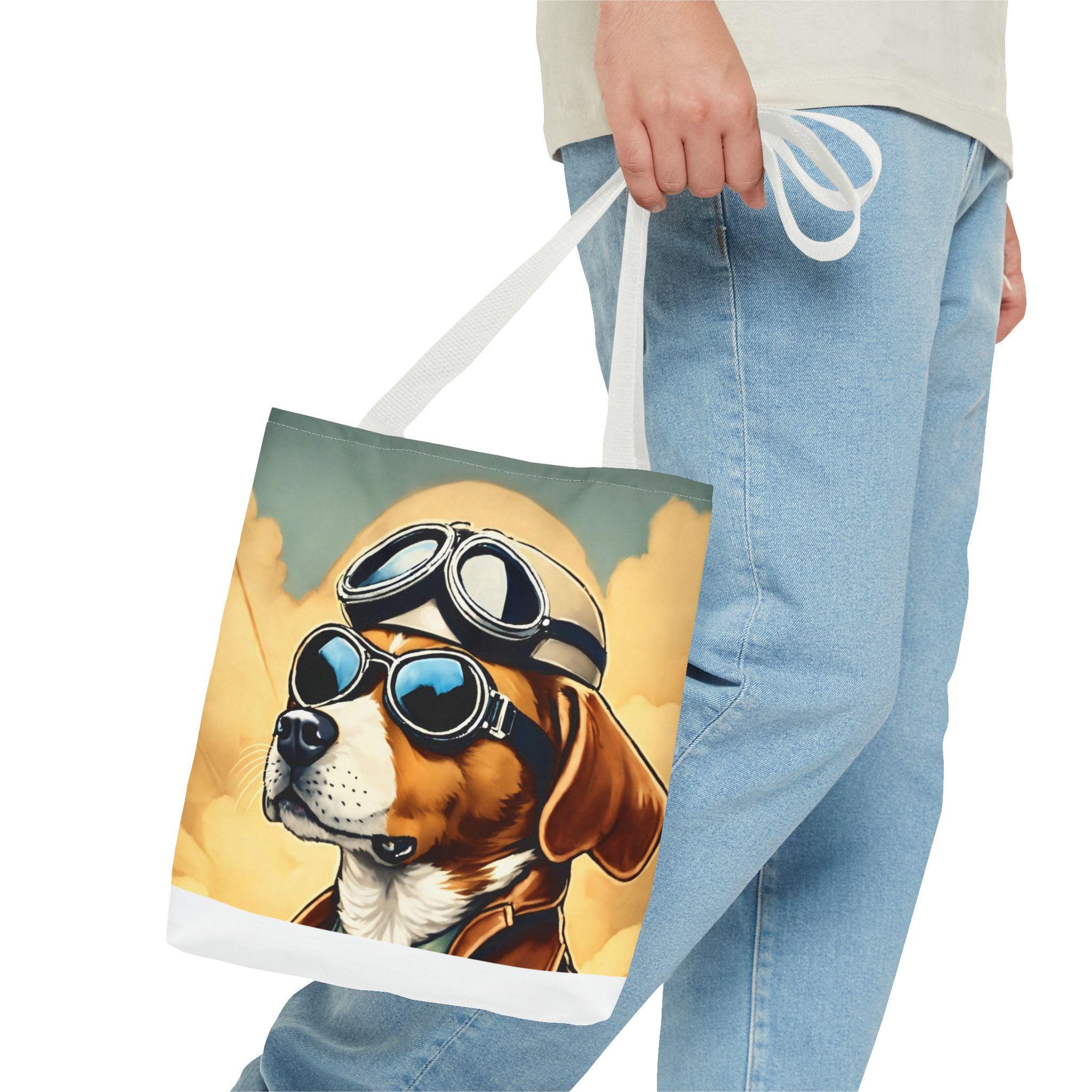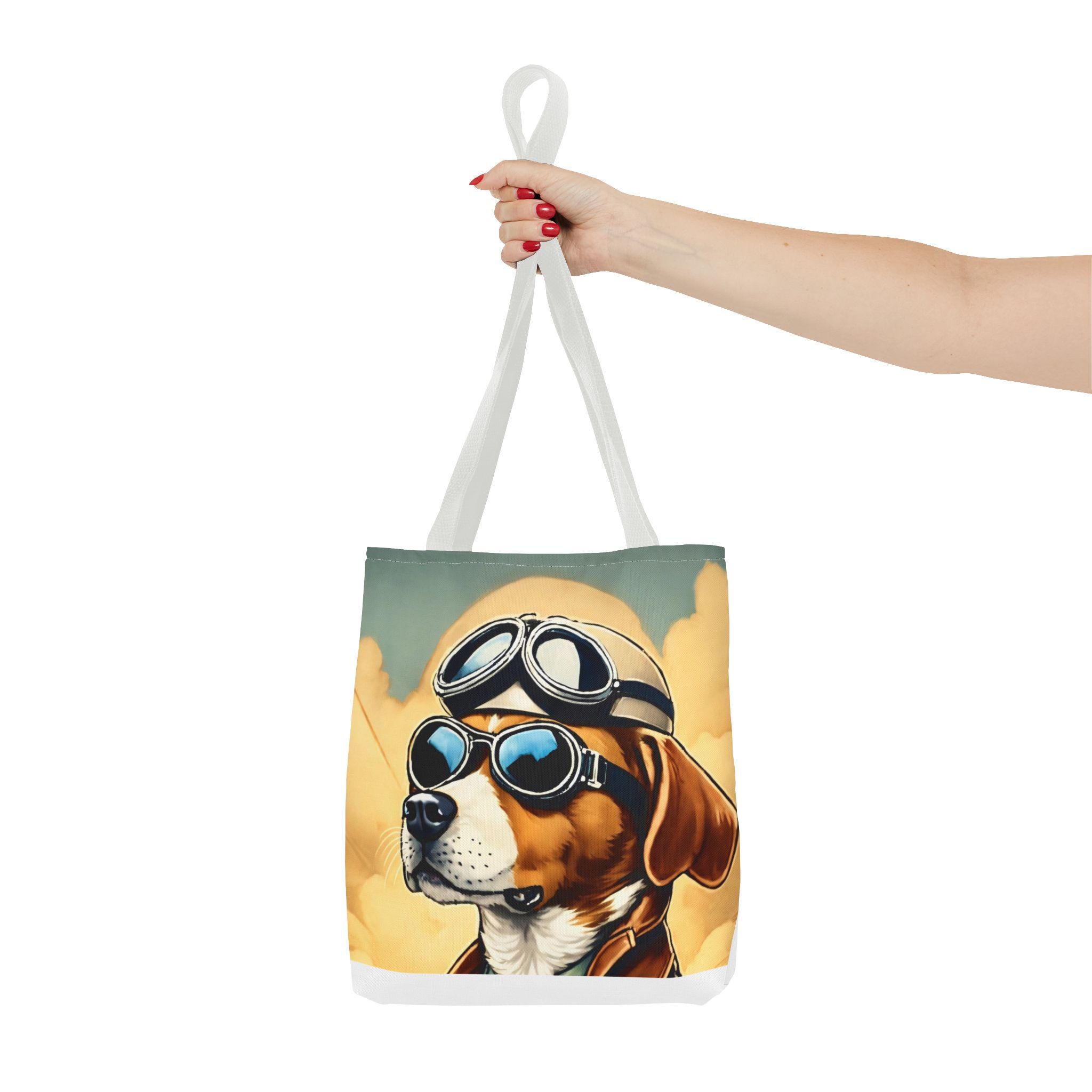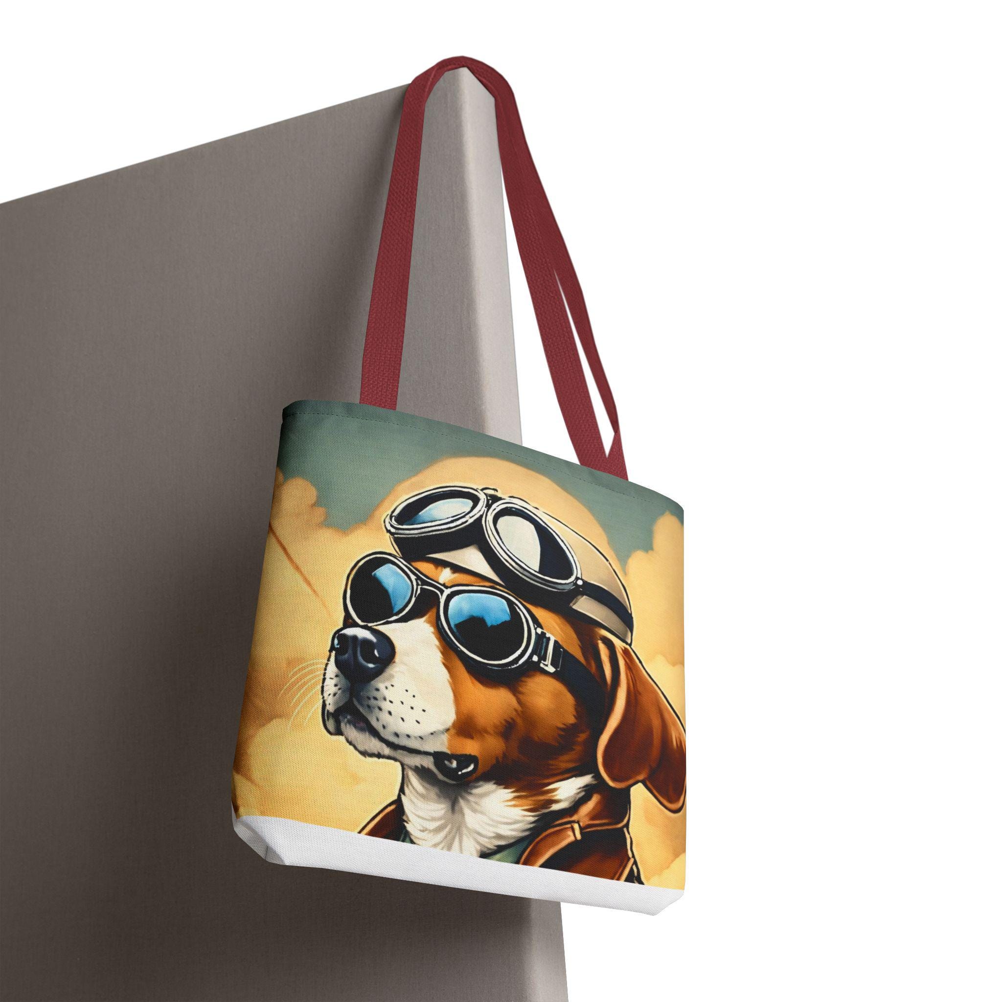 This canvas-style tote carries a playful, nostalgic vibe — a vintage aviator dog rendered in warm, painterly tones. The image sits boldly across the bag, its goggles and leather cap evoking open roads and weekend adventures. Durable polyester construction and a roomy boxed shape mean this tote moves from farmers’ markets to commuter trains without losing its charm. Choose a handle color that matches your mood and pack it with groceries, sketchbooks, or a lightweight jacket for impromptu day trips.
