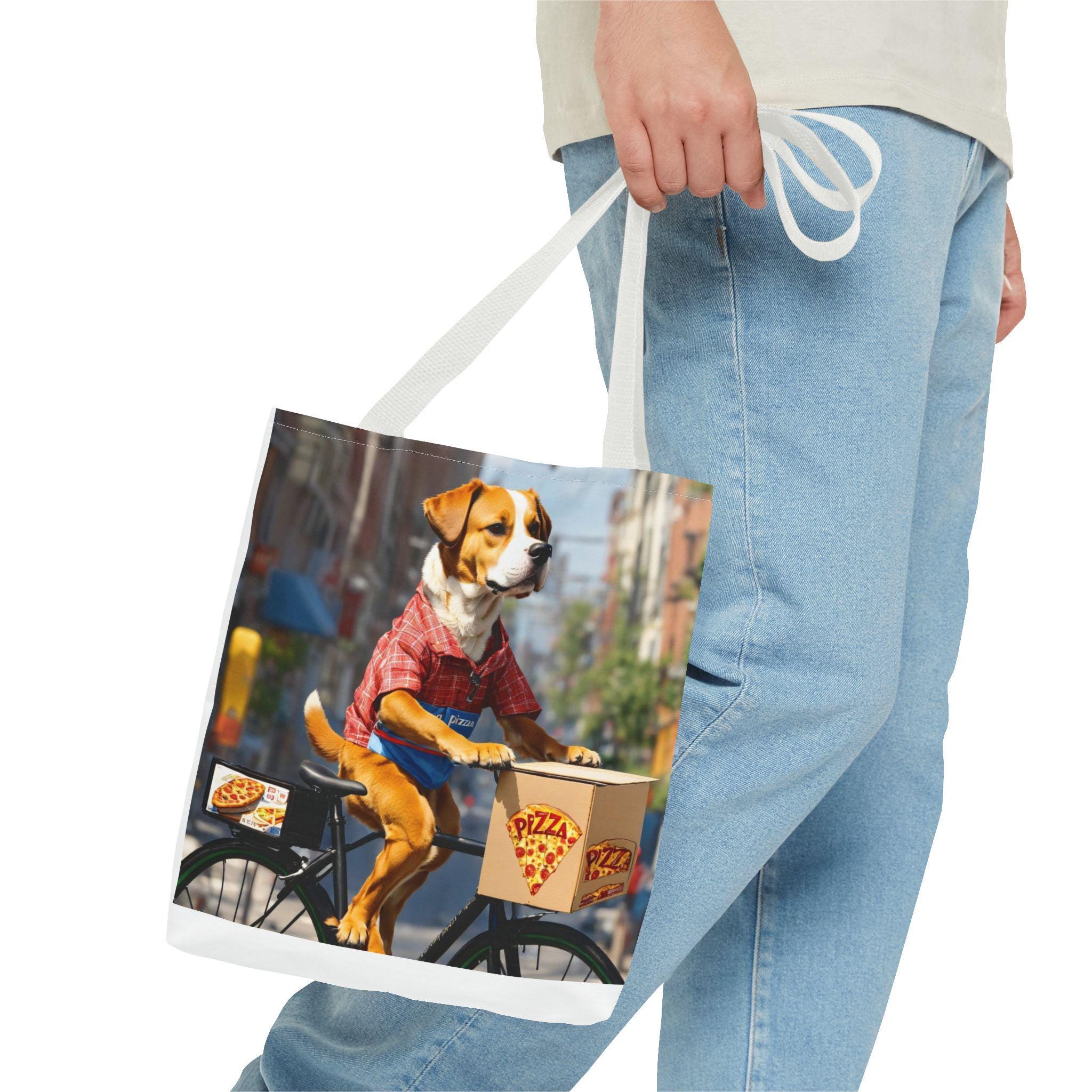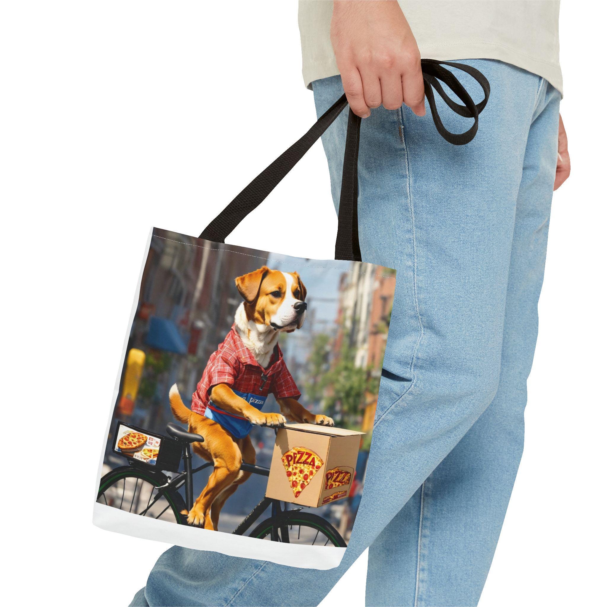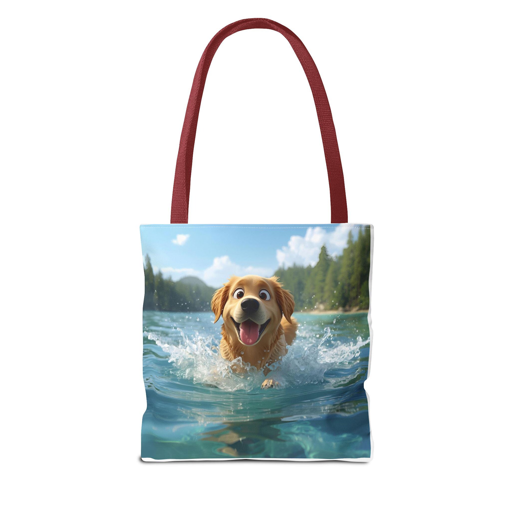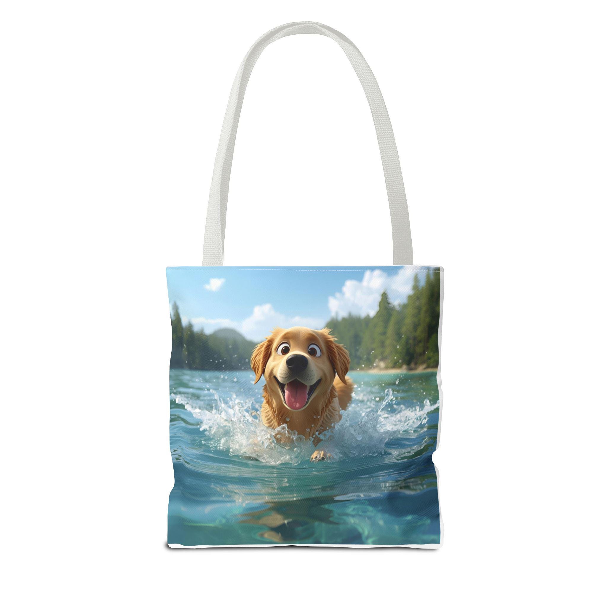 This durable polyester tote brings playful, sunlit moments into everyday carry. Vibrant, all-over prints of joyful dogs — one pedaling a pizza delivery bike through city streets, another plunging into clear lake water — make the bag feel like a small story you can take with you. The structured box corners and reinforced handle stitching mean it holds groceries, books, or beach towels without sagging. Lightweight, quick-drying fabric with a laminated interior keeps contents tidy, while the choice of handle colors and three sizes lets you match the bag to your routine. Use it for errands, park days, or as a cheerful companion on weekend adventures.