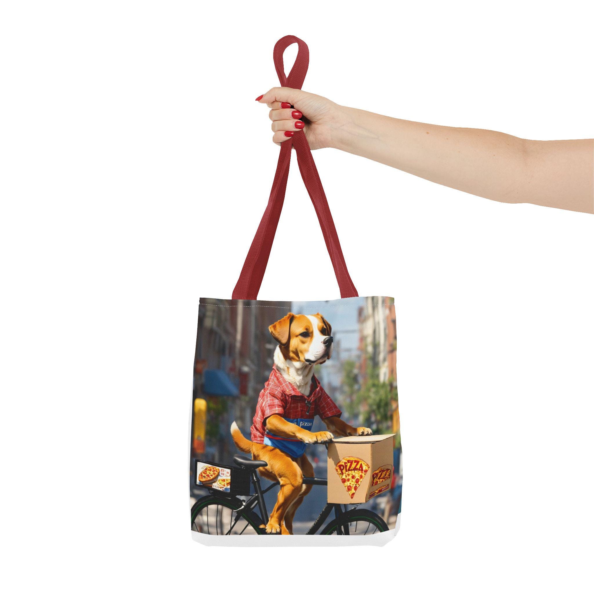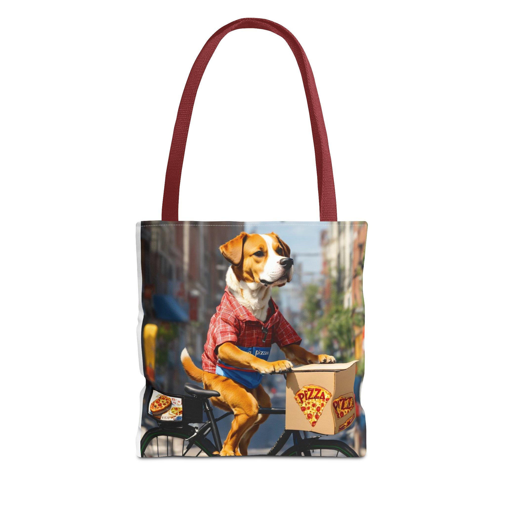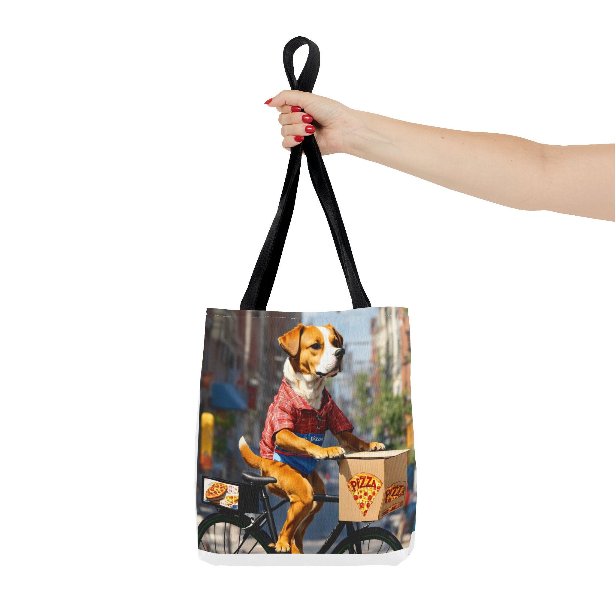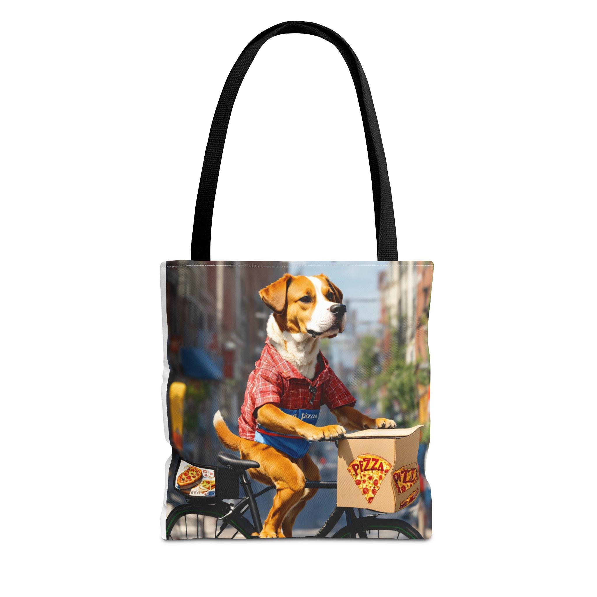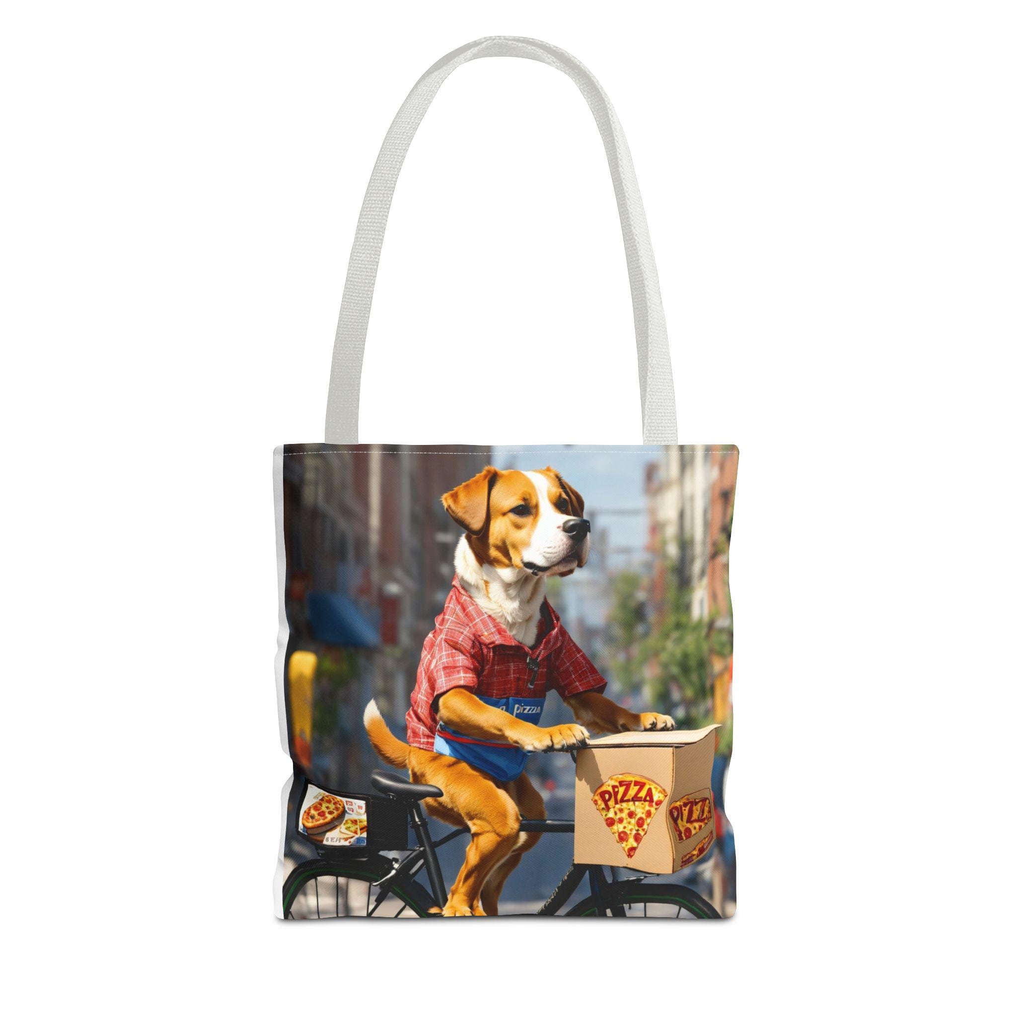 This durable polyester tote brings playful, sunlit moments into everyday carry. Vibrant, all-over prints of joyful dogs — one pedaling a pizza delivery bike through city streets, another plunging into clear lake water — make the bag feel like a small story you can take with you. The structured box corners and reinforced handle stitching mean it holds groceries, books, or beach towels without sagging. Lightweight, quick-drying fabric with a laminated interior keeps contents tidy, while the choice of handle colors and three sizes lets you match the bag to your routine. Use it for errands, park days, or as a cheerful companion on weekend adventures.