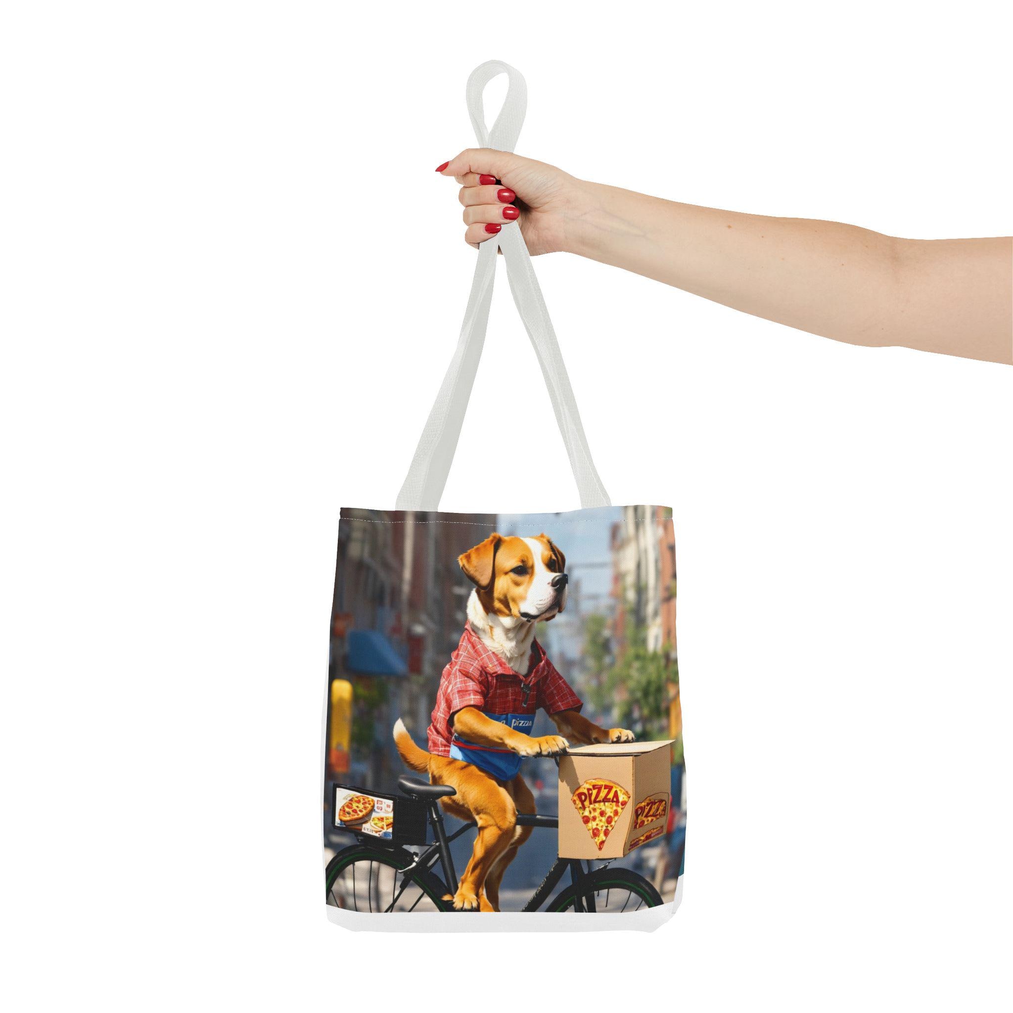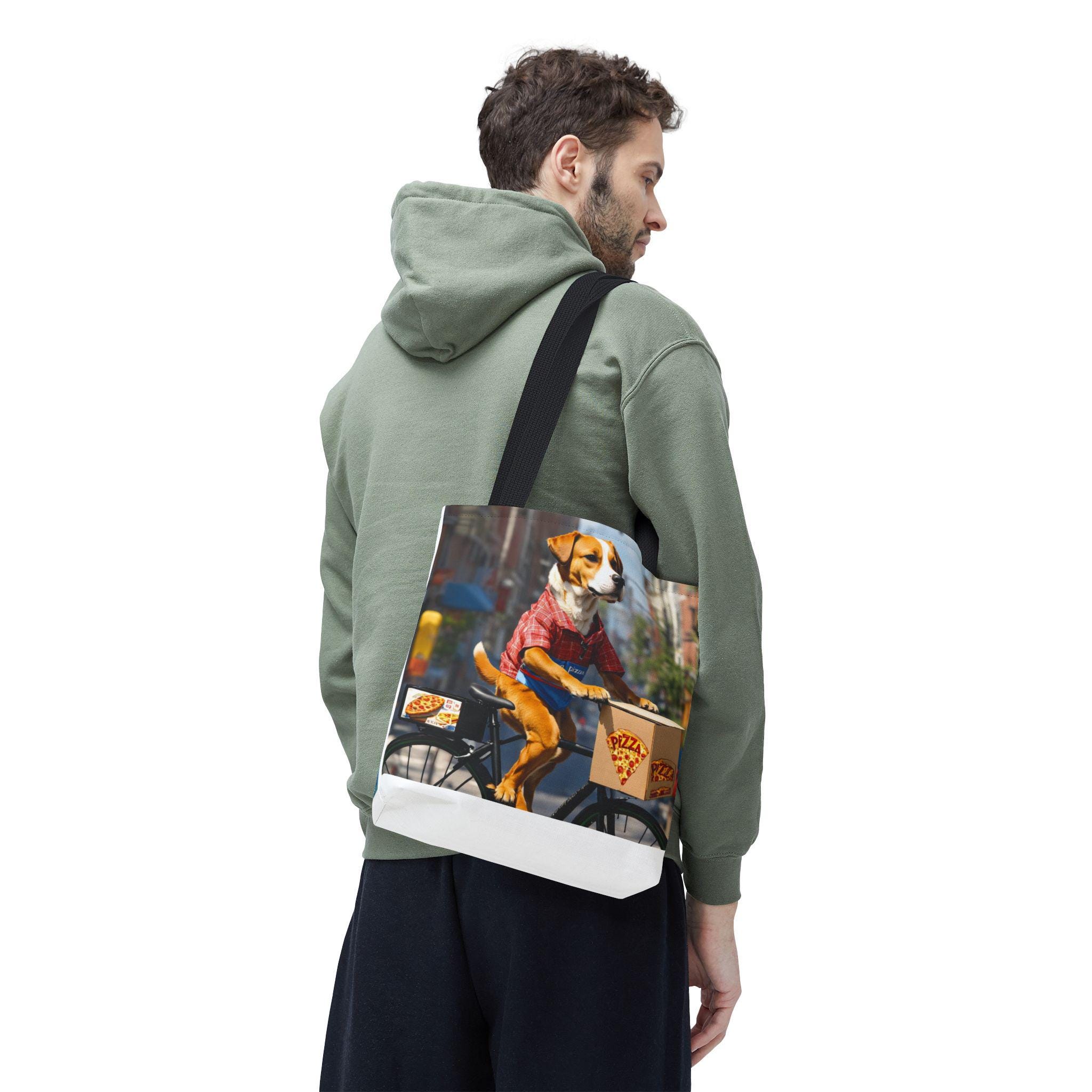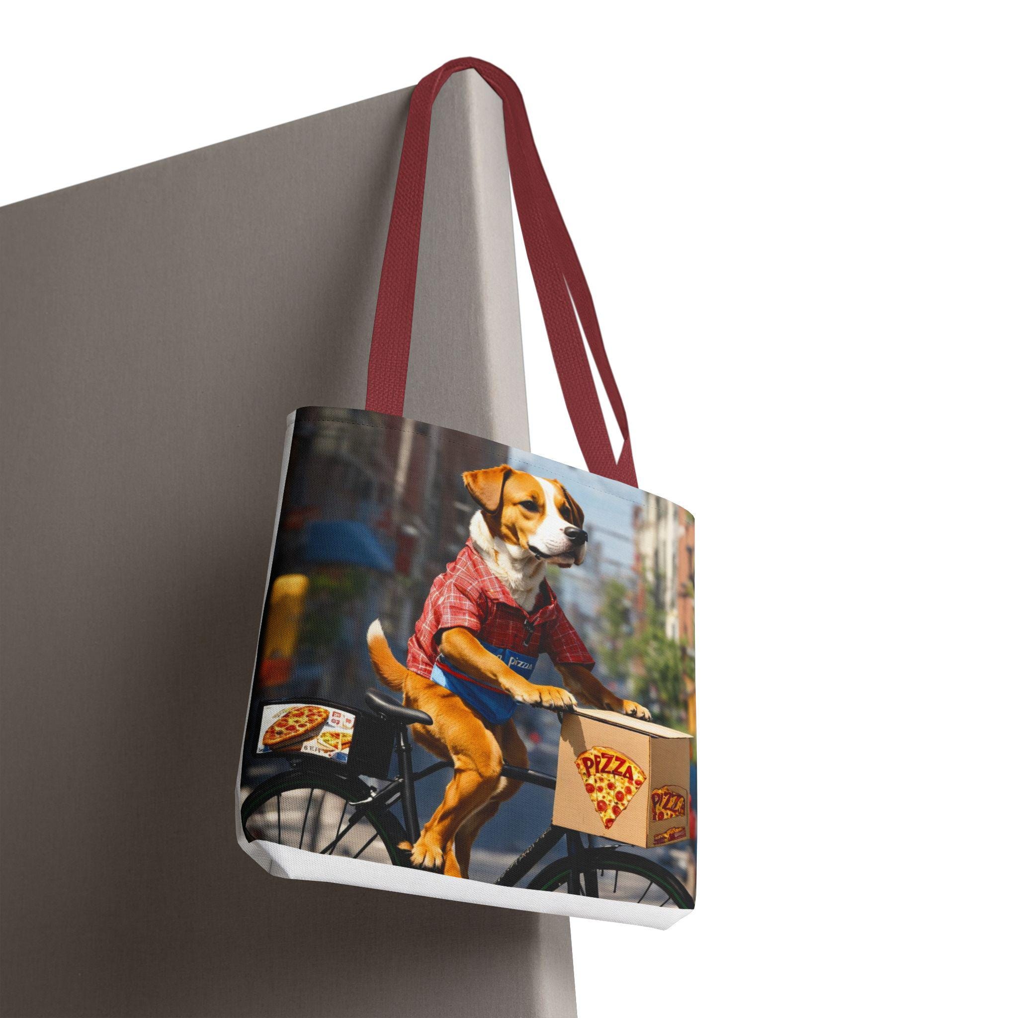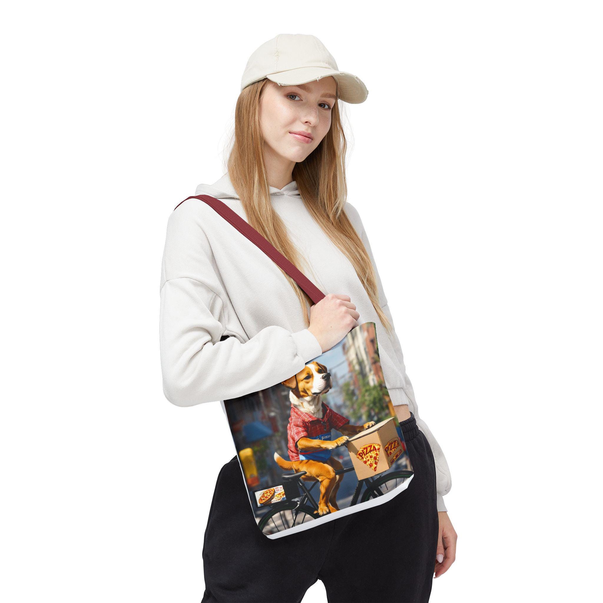 This durable polyester tote brings playful, sunlit moments into everyday carry. Vibrant, all-over prints of joyful dogs — one pedaling a pizza delivery bike through city streets, another plunging into clear lake water — make the bag feel like a small story you can take with you. The structured box corners and reinforced handle stitching mean it holds groceries, books, or beach towels without sagging. Lightweight, quick-drying fabric with a laminated interior keeps contents tidy, while the choice of handle colors and three sizes lets you match the bag to your routine. Use it for errands, park days, or as a cheerful companion on weekend adventures.