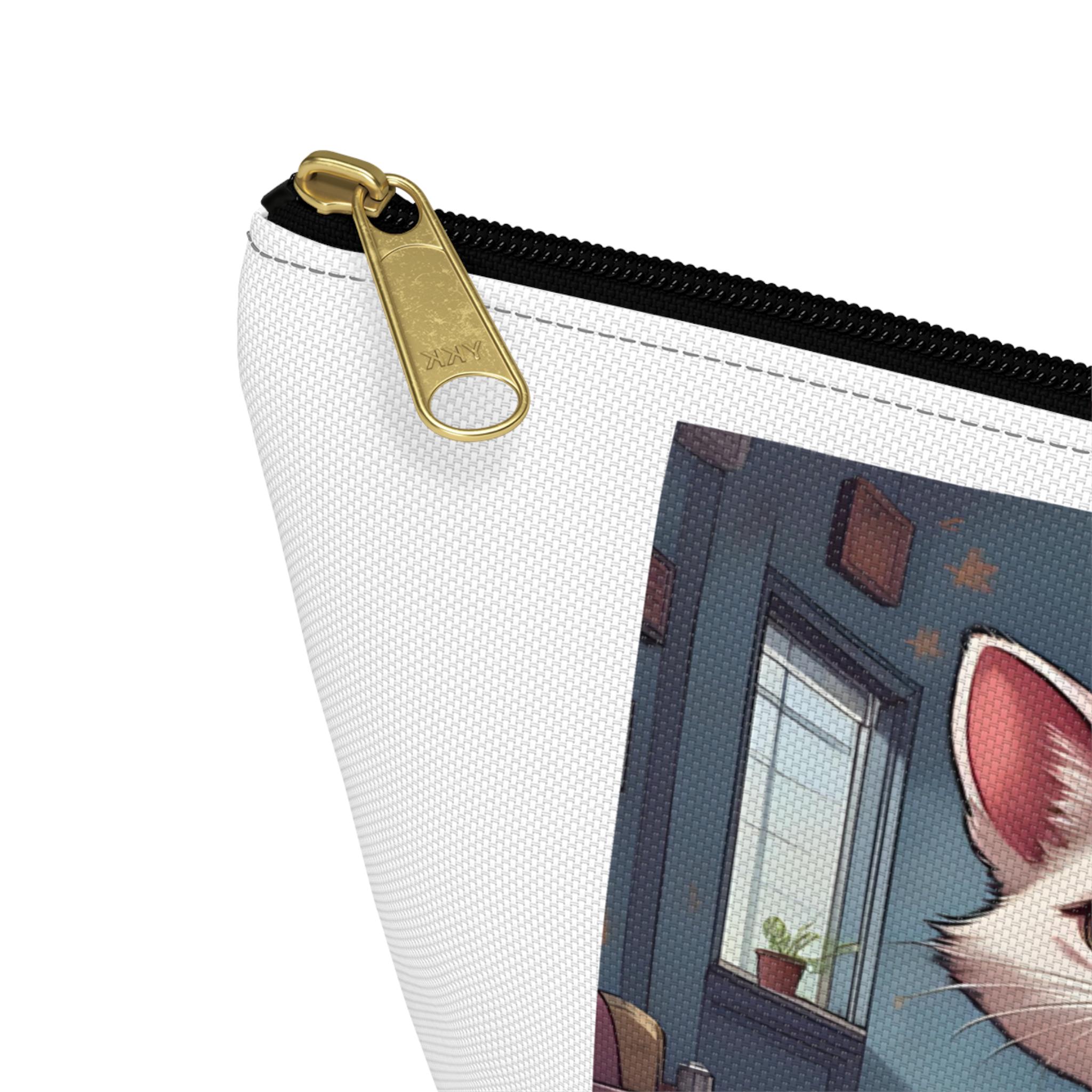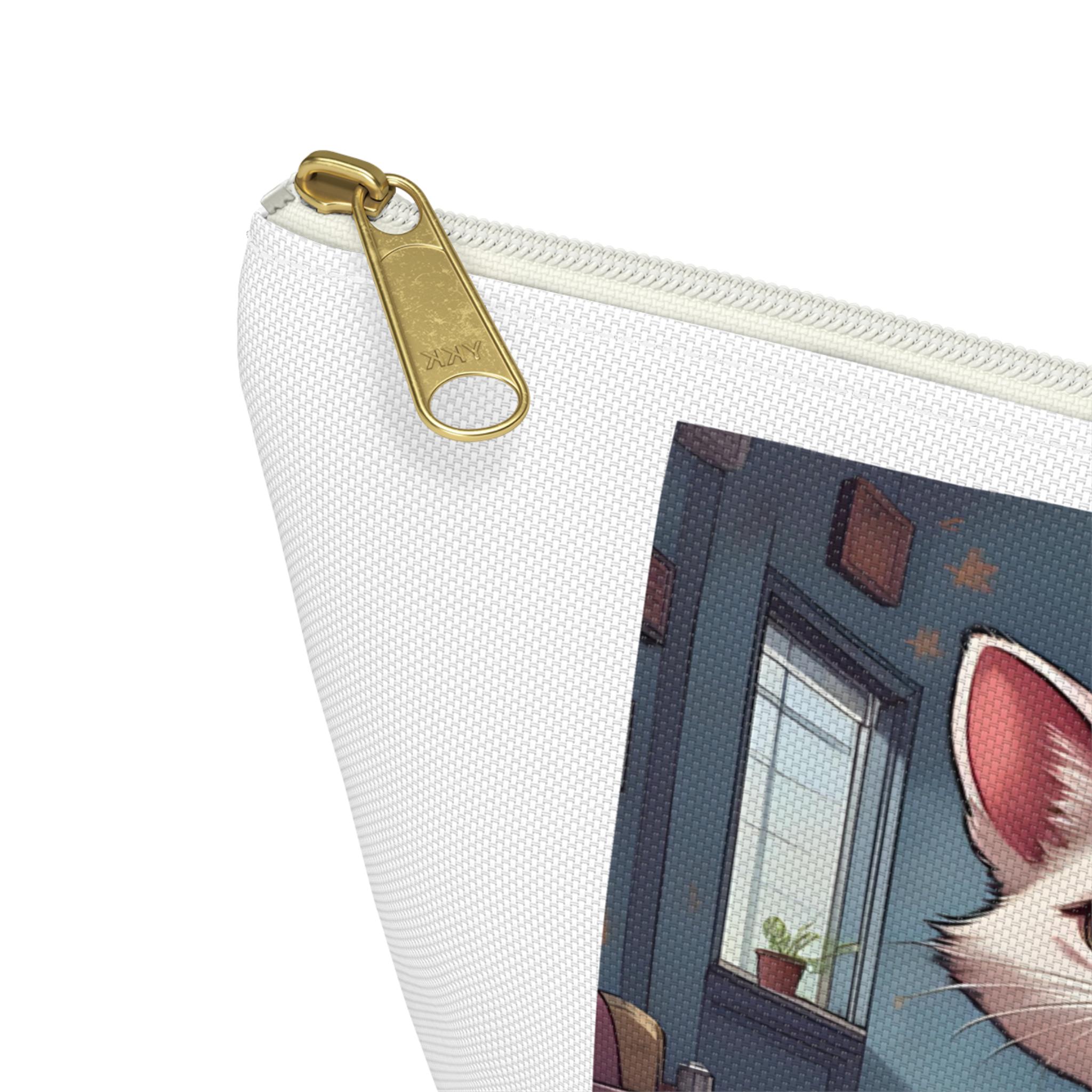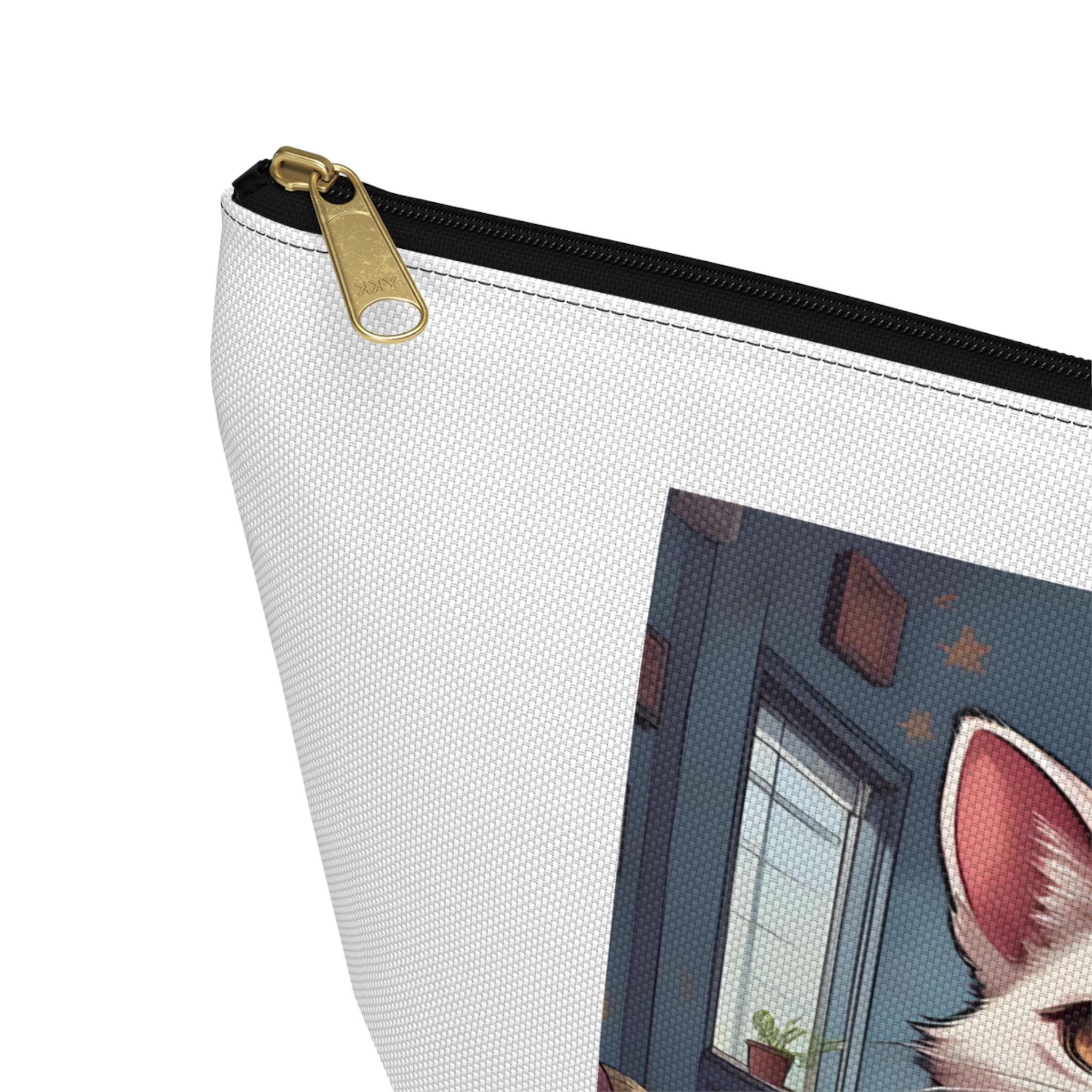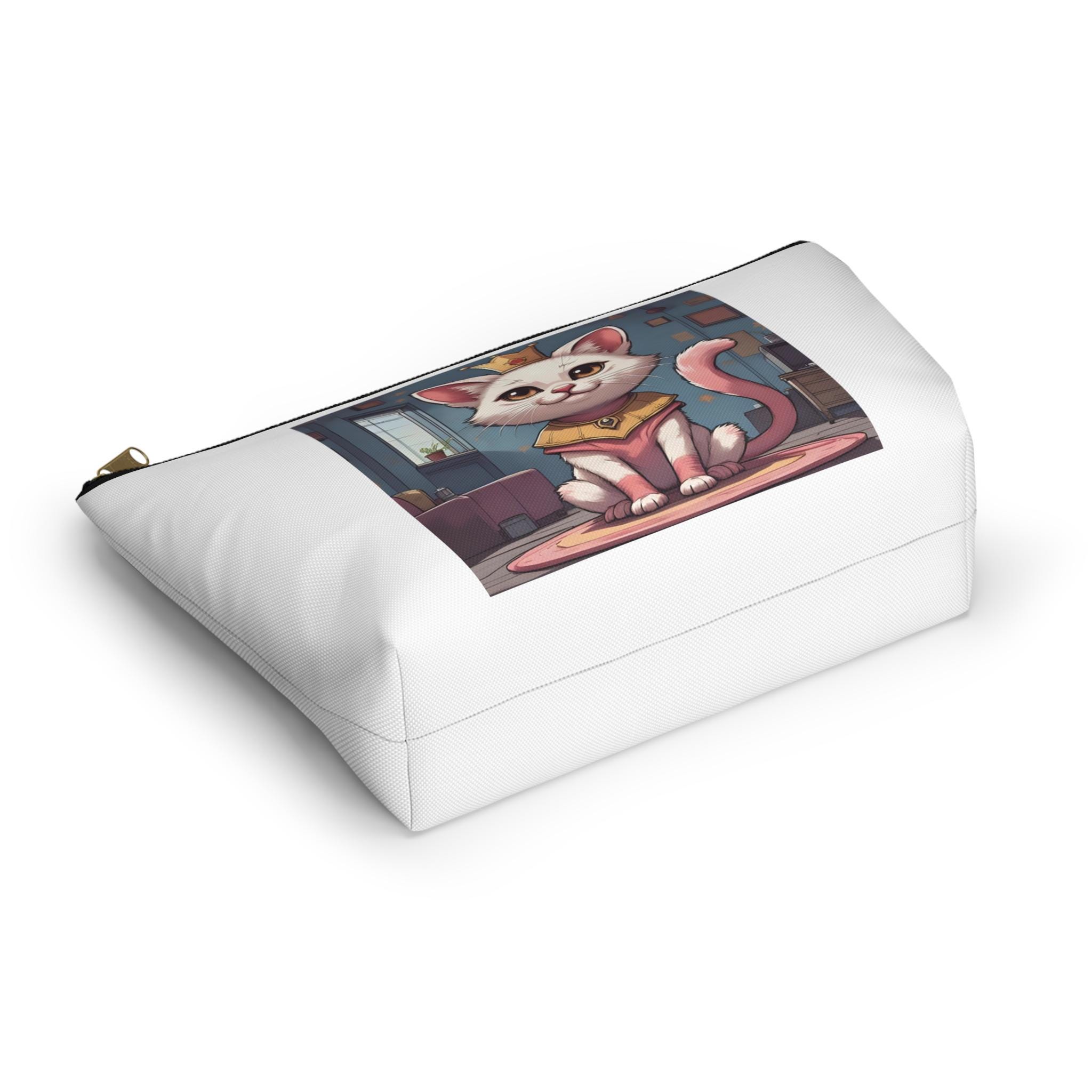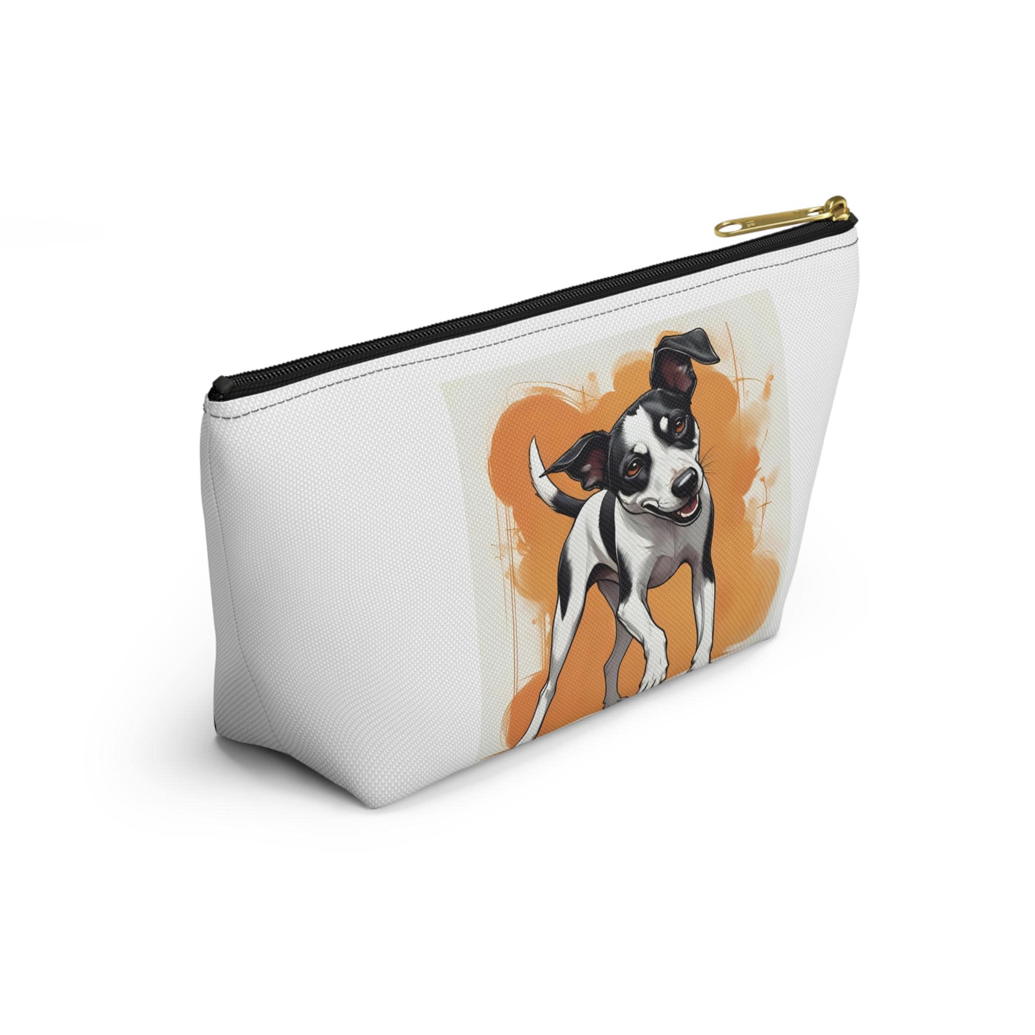 A compact, sculpted accessory pouch that brings playful pet portraits into everyday life. Crafted from spun polyester with a structured T-bottom, it holds grooming tools, chargers, makeup, or art supplies without spilling. The white interior laminate keeps the print vibrant and resists stains, while a matching zipper with a gold pull adds a touch of polish. Printed with bright, crisp colors, the pouch showcases whimsical cat- and dog-themed artwork that feels warm, personal, and a little proud — like carrying a tiny piece of home with you.