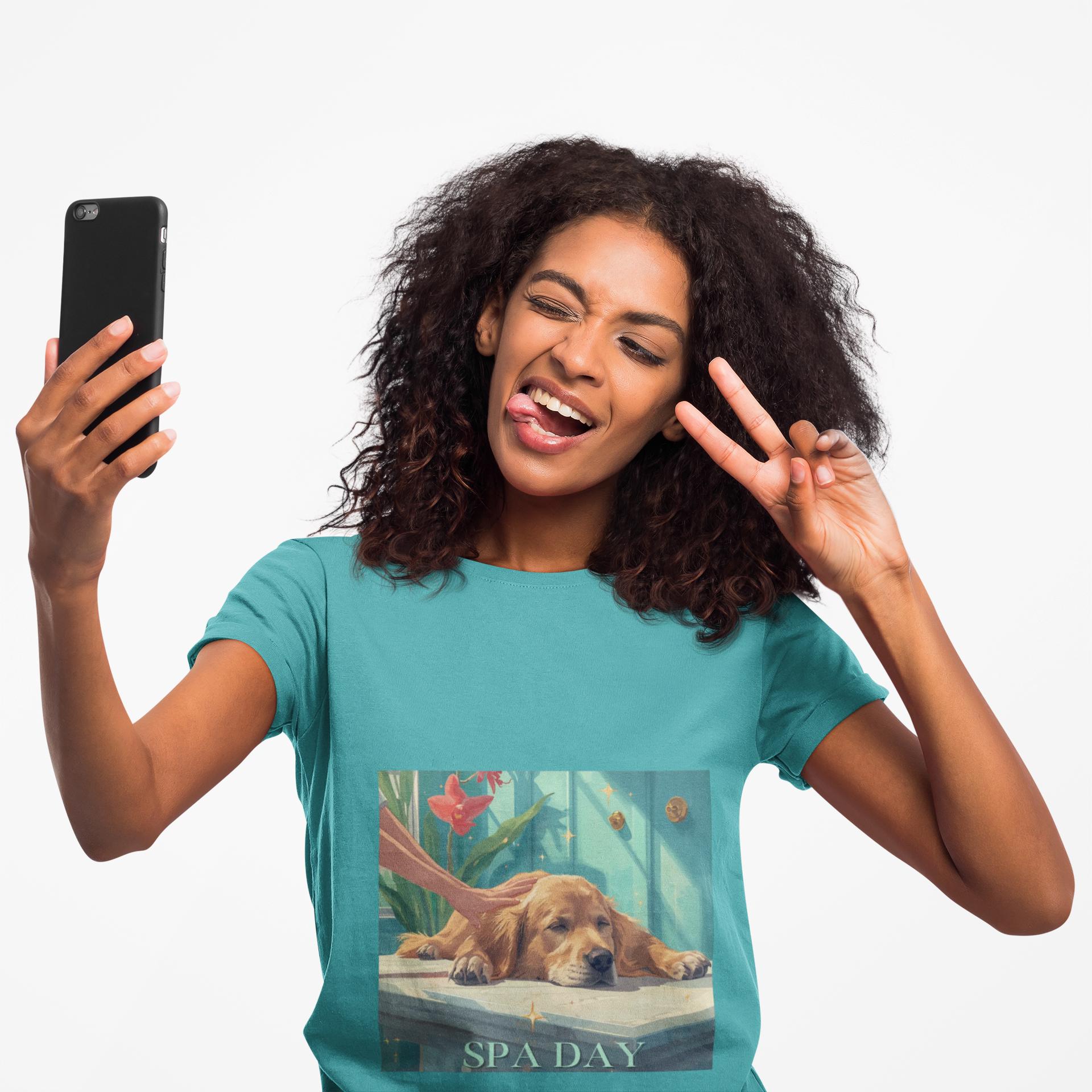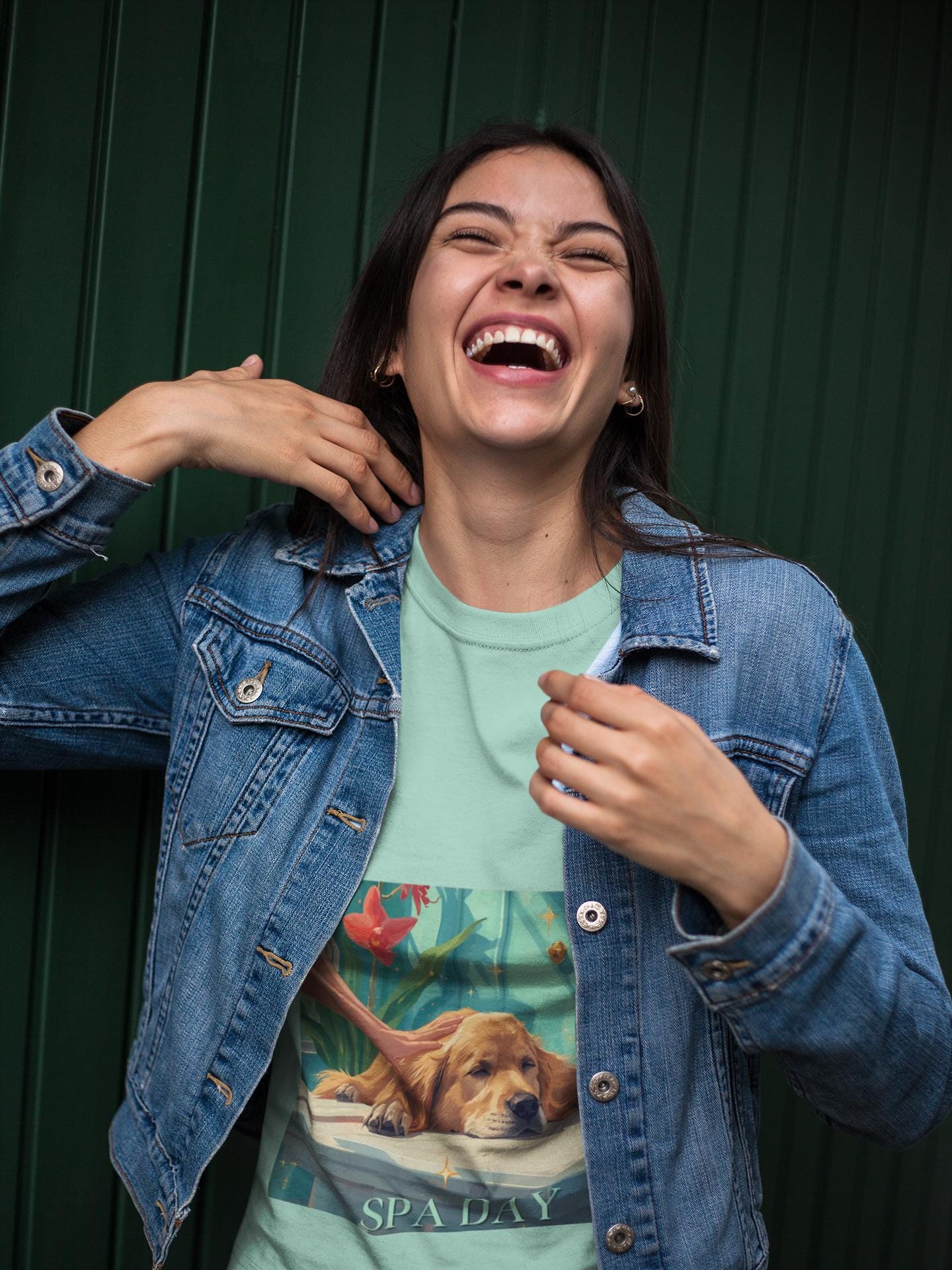 Soft, light, and quietly charming — this tee carries a sunny snapshot of calm: a content dog lounging poolside beneath fluttering koi and a hand offering a gentle rub. The image reads like a small escape from a busy day, a reminder to slow down and savor simple comforts. Wear it to mornings at the café, slow weekend walks, or evenings when you want to feel cozy and easy. The classic fit and breathable fabric let the design do the talking while keeping you comfortable all day.
